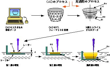 SLA-1、翌1988年にはC-MET社が設立されSOUPシステムが発表され、モノづくりのため新しいツールとして注目されてきた。最近では、IT技術の台頭と3次元CADの普及に連れて、自動車産業界、家電産業界などの基幹産業分野を中心に光造形システムが急速に採用されるようになった。
